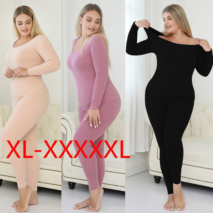 Winter Fat Women Plus Size Warmer Thermal Pajamas Suit Set S