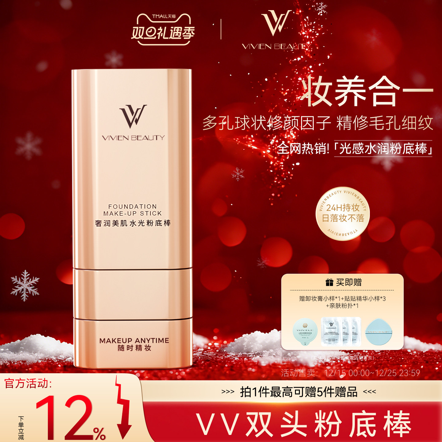 Vivien Beautyvv Double-Ended Foundation Stick 24H Long-Lasting Makeup Oil Control Light Concealer Waterproof Non-Removing Makeup Powder Liquid