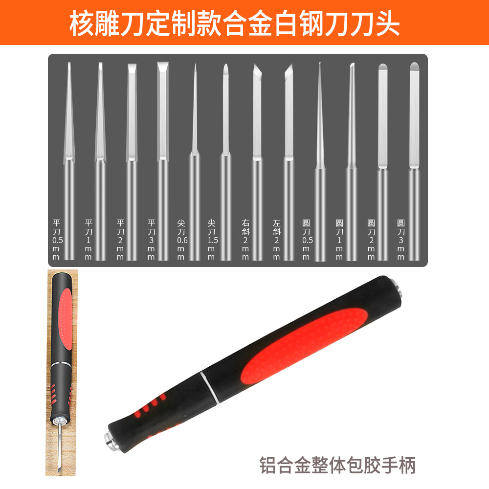 White steel carving cutter head aluminum alloy glue-coated handmade carving knife woodworking carving knife Wenwan olive walnut egg carving miniature carving