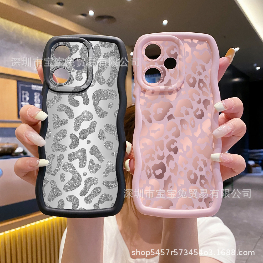 Suitable for Infinix Protective Case Pink Silver Leopard Print Anti-Fall Wavy Edge Mobile Phone Case