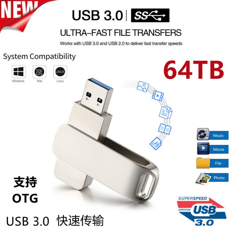 Cross-border upgrade 64TB 32TB 16TBU disk Type-C USB3.0 large capacity metal shell rotating U disk